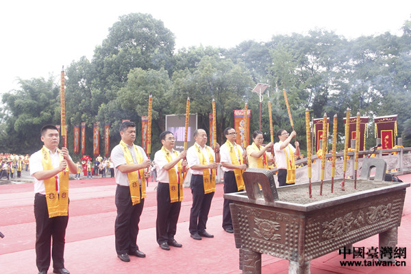 臺灣嘉賓代表向始祖炎帝敬獻高香。(中國臺灣網 扶海濤 攝)