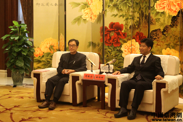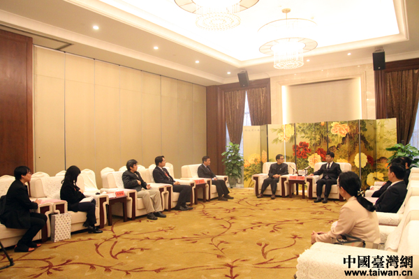 11月4日下午,江蘇省泰州市市委書記曲福田會見臺灣《聯合報》社長項國寧一行。(中國臺灣網 王怡然 攝)