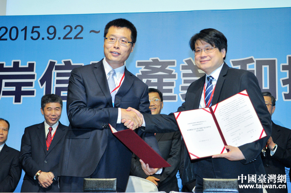 2015年9月,工信部副部長(zhǎng)懷進(jìn)鵬見證聯(lián)發(fā)科技與工信部軟件與集成電路促進(jìn)中心簽署戰(zhàn)略合作協(xié)議副本。(中國(guó)臺(tái)灣網(wǎng)發(fā) 聯(lián)發(fā)科技供圖)