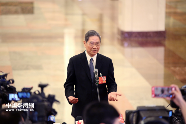 5日,十三屆全國人大一次會議在京召開,在大會開幕會后,中共中央臺辦、國務院臺辦主任張志軍在“部長通道”接受記者采訪。(中國臺灣網 何建峰 攝)