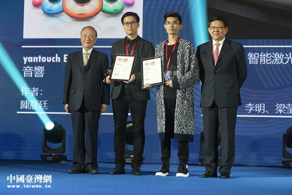 海峽兩岸關系協會會長陳德銘、臺灣新黨主席郁慕明為產品組銀獎獲得者頒獎。(中國臺灣網 尹賽楠攝 )