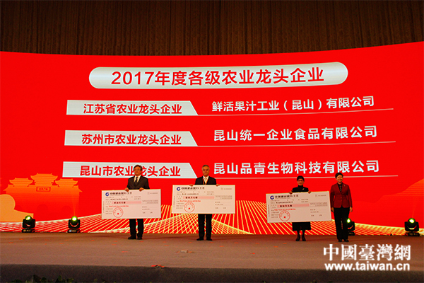 昆山市政府為2017年度各級農業龍頭企業兌現獎勵資金。(中國臺灣網 汪明珠 攝)
