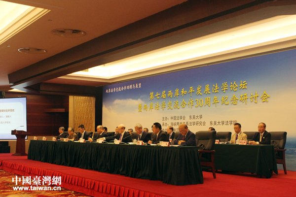 第七屆兩岸和平發(fā)展法學(xué)論壇暨兩岸法學(xué)交流合作30周年紀(jì)念研討會(huì)7月19日在北京開(kāi)幕。(中國(guó)臺(tái)灣網(wǎng) 張潔 攝)