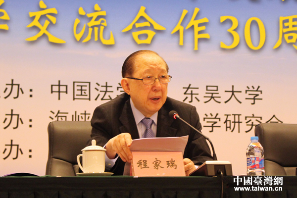 臺(tái)灣東吳大學(xué)法學(xué)院教授、前院長(zhǎng)程家瑞進(jìn)行主題發(fā)言。(中國(guó)臺(tái)灣網(wǎng) 張潔 攝)