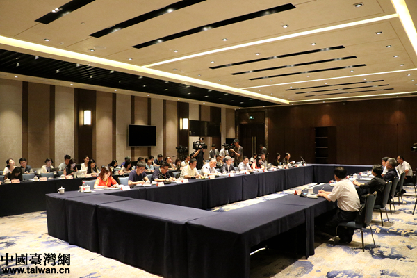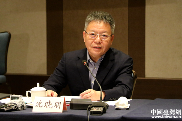 海南省省長(zhǎng)沈曉明會(huì)見(jiàn)“海峽兩岸記者特區(qū)行”聯(lián)合采訪團(tuán)一行。(中國(guó)臺(tái)灣網(wǎng) 尹賽楠 攝)