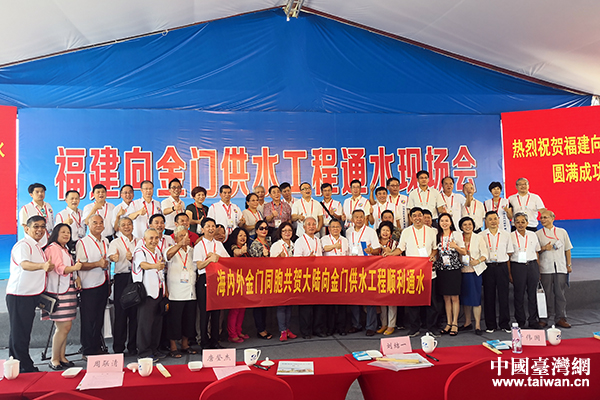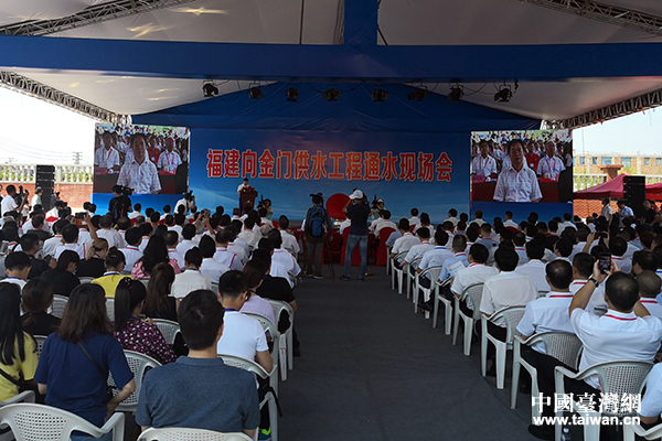福建向金門供水工程通水現場會在福建晉江舉行,工程實現正式通水。(福建省臺辦 張寧 攝)