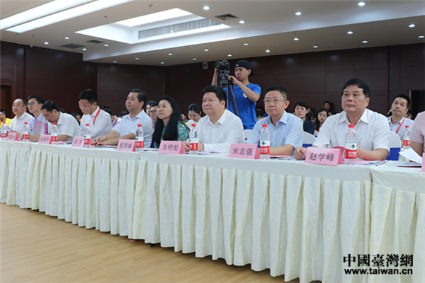 國(guó)務(wù)院臺(tái)灣事務(wù)辦公室副主任龍明彪、國(guó)務(wù)院臺(tái)灣事務(wù)辦公室交流局副局長(zhǎng)董碧幽、福建省臺(tái)辦副主任宋志強(qiáng)、福州市副市長(zhǎng)杭東等領(lǐng)導(dǎo)出席論壇。(中國(guó)臺(tái)灣網(wǎng) 郜利敏 攝)