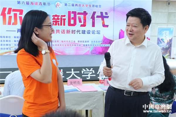 中國(guó)臺(tái)灣網(wǎng)8月12日福州訊 (記者 郜利敏 張露露)12日上午,“你好,新時(shí)代”——兩岸大學(xué)生領(lǐng)袖共話新時(shí)代建設(shè)論壇在福州舉行。國(guó)務(wù)院臺(tái)灣事務(wù)辦公室副主任龍明彪、國(guó)務(wù)院臺(tái)灣事務(wù)辦公室交流局副局長(zhǎng)董碧幽、福建省臺(tái)辦副主任宋志強(qiáng)、福州市副市長(zhǎng)杭東等領(lǐng)導(dǎo)出席論壇,120名兩岸大學(xué)生參加論壇,共話新時(shí)代建設(shè)。