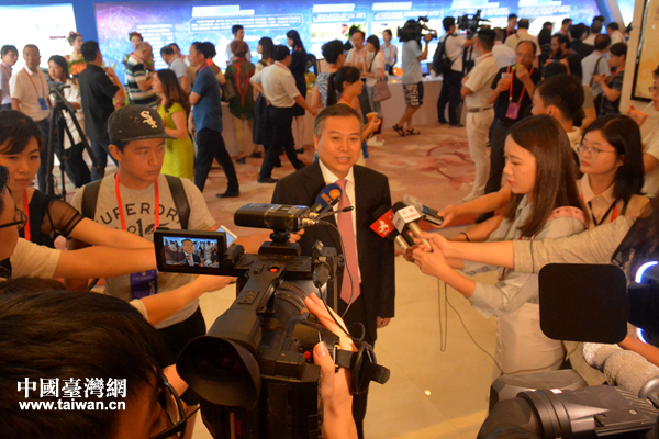 江西省委(省政府)臺辦主任鄧保生接受媒體采訪。(圖片來源:江西省臺辦)