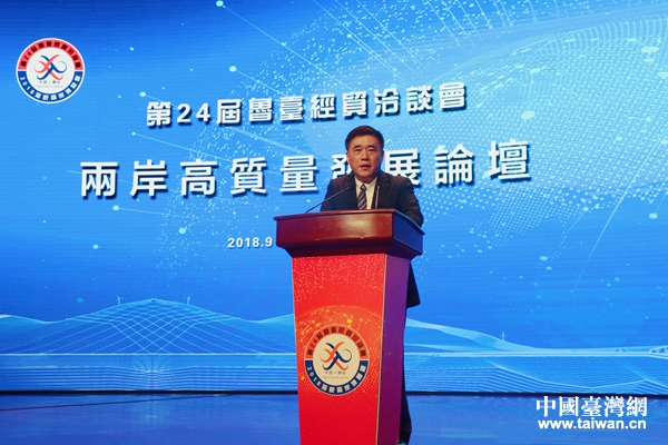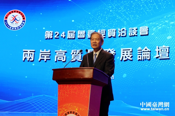 海峽兩岸關系協會會長張志軍在第24屆魯臺經貿洽談會開幕式上致辭。(中國臺灣網 趙苗青 攝)