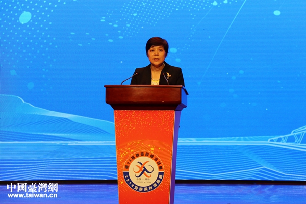 山東省副省長任愛榮在第24屆魯臺經貿洽談會開幕式上致辭。(中國臺灣網 趙苗青 攝)