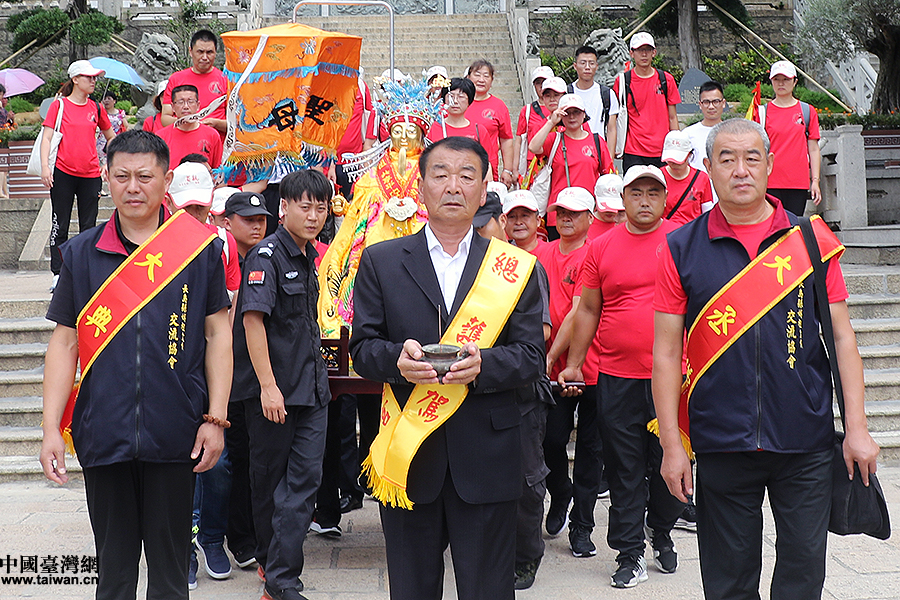 中國(guó)臺(tái)灣網(wǎng)9月12日臺(tái)北訊 (記者 何建峰)山東長(zhǎng)島顯應(yīng)宮千年媽祖金身日前結(jié)束了在媽祖故鄉(xiāng)——福建湄洲的省親活動(dòng),12日乘坐輪渡抵達(dá)臺(tái)北,開(kāi)啟了為期13天的赴臺(tái)結(jié)緣會(huì)親活動(dòng)。
