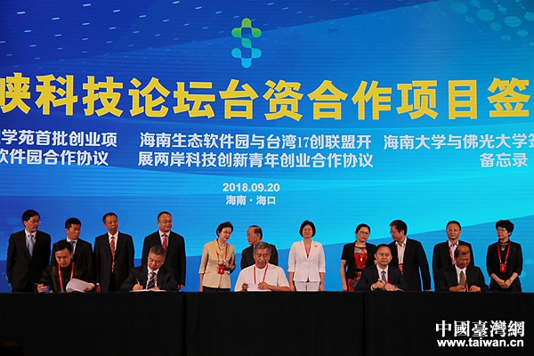 中國臺灣網(wǎng)9月20日海口訊 (記者 張亞靜)以“科技互聯(lián)兩岸 創(chuàng)新共享未來”為主題的2018海峽科技論壇20日上午在海口開幕。會上,現(xiàn)場簽約5個臺資合作項目,內(nèi)容涉及人工智能、醫(yī)療健康、教育、金融服務(wù)等領(lǐng)域。