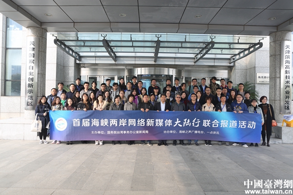 兩岸新媒體人在天津?yàn)I海高新技術(shù)產(chǎn)業(yè)開發(fā)區(qū)管委會(huì)合影留念。(中國(guó)臺(tái)灣網(wǎng) 陳佳慧 攝)