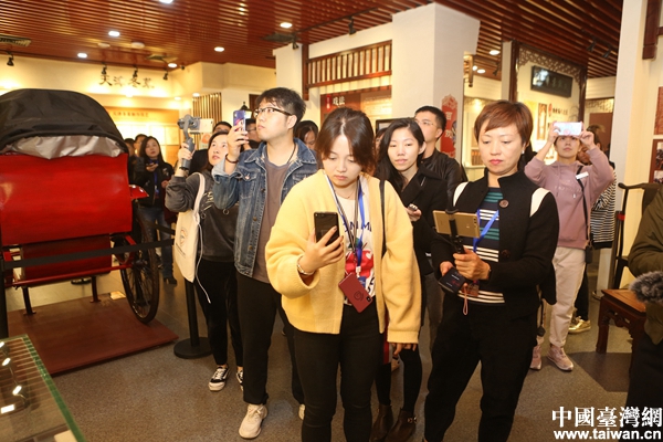 兩岸新媒體人參訪位于民園廣場(chǎng)的天津和平區(qū)非物質(zhì)文化遺產(chǎn)展覽博物館。(中國(guó)臺(tái)灣網(wǎng) 陳佳慧 攝)