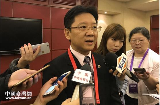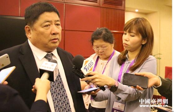 全國(guó)臺(tái)企聯(lián)會(huì)長(zhǎng)王屏生接受兩岸記者采訪。(中國(guó)臺(tái)灣網(wǎng) 趙苗青 攝)