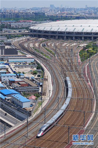 6月26日,“復(fù)興號”G123次列車駛出北京南站。當(dāng)日,中國標(biāo)準(zhǔn)動車組“復(fù)興號”在京滬高鐵兩端的北京南站和上海虹橋站雙向首發(fā),分別擔(dān)當(dāng)G123次和G124次高速列車。“復(fù)興號”是由中國鐵路總公司牽頭組織研制、具有完全自主知識產(chǎn)權(quán)、達到世界先進水平的中國標(biāo)準(zhǔn)動車組。(新華社記者 邢廣利 攝)