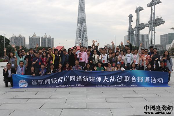 兩岸媒體人在廣州天和中央商務(wù)區(qū)合影。(中國(guó)臺(tái)灣網(wǎng) 陳佳慧 攝)