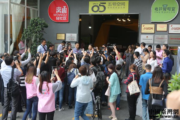 兩岸媒體人在眾創(chuàng)五號(hào)空間采訪。(中國(guó)臺(tái)灣網(wǎng) 陳佳慧 攝)