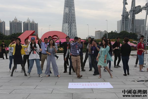 兩岸媒體人在廣州天和中央商務(wù)區(qū)快閃。中國(guó)臺(tái)灣網(wǎng) 陳佳慧 攝)