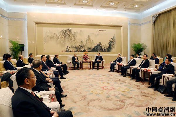 中共中央政治局常委、全國政協(xié)主席汪洋會(huì)見王文淵率領(lǐng)的臺(tái)灣工業(yè)總會(huì)理監(jiān)事參訪團(tuán)一行。(中國臺(tái)灣網(wǎng) 尹賽楠 攝)
