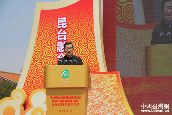 中國臺灣網3月23日昆山訊(記者 汪明珠) 23日上午,昆山慧聚廣場“海峽兩岸交流基地”授牌儀式在當地舉行。中共中央臺辦、國務院臺辦交流局局長黃文濤向昆山市授牌。兩岸企業家峰會臺灣方面理事長蕭萬長、江蘇省臺辦主任練月琴、中共昆山市委書記杜小剛以及兩岸500余位嘉賓共同出席本次活動。