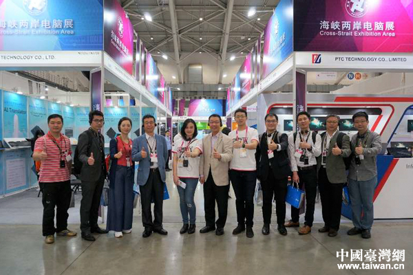 機電商會臺北辦事處主任李榮民一行參觀海峽兩岸展區時合影。(中國臺灣網發 機電商會臺北辦事處供圖 )