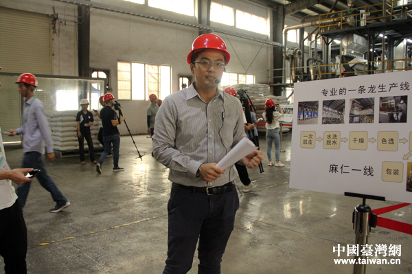 臺企富味鄉(xiāng)油脂食品有限公司臺籍高管張世政對記者介紹情況。(中國臺灣網(wǎng)王怡然 攝)