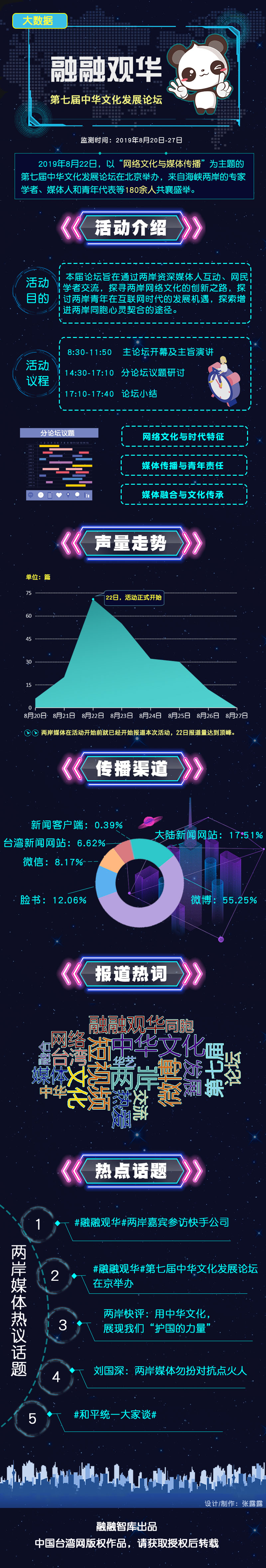 【編者按】2019年8月22日,以“網絡文化與媒體傳播”為主題的第七屆中華文化發展論壇在北京舉辦,來自海峽兩岸的專家學者、媒體人和青年代表180余人共襄盛舉。