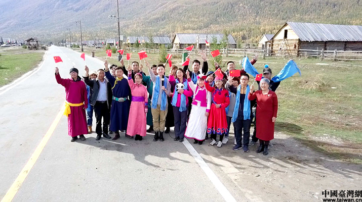 兩岸青年與當地少數民族朋友一起在新疆哈納斯村唱響《我和我的祖國》。 (中國臺灣網 發)