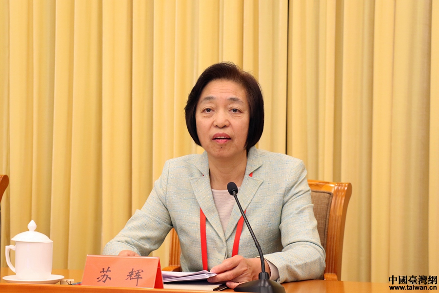 全國政協副主席、臺盟中央主席蘇輝代表臺盟第十屆中央常務委員會作工作報告。(中國臺灣網 尹賽楠 攝)