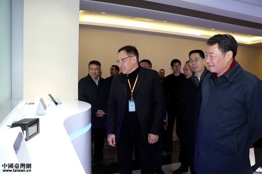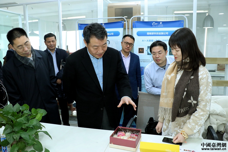 陳元豐在成都星點海峽兩岸新經濟創業園看望臺灣創業青年。(中國臺灣網 尹賽楠 攝)