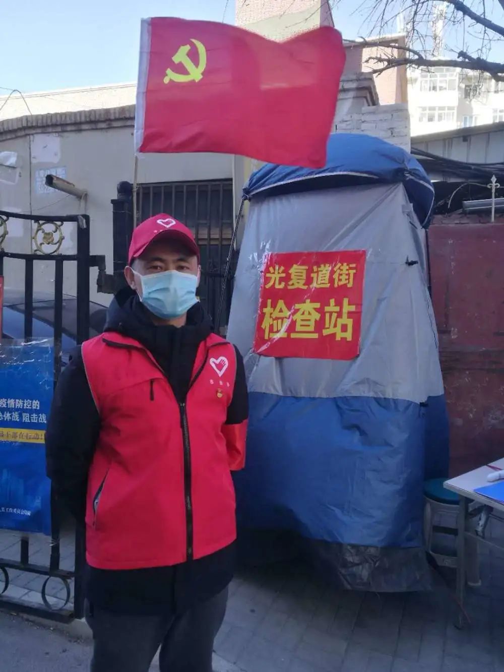 不是我的家,但我守著它,不畏風和雨,黨徽照亮紅馬甲。
