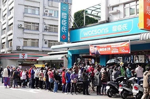 排起長隊購買口罩的臺灣民眾