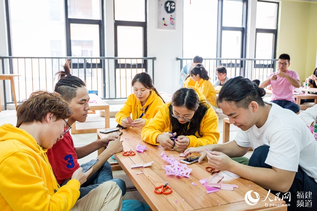 兩岸青年在“兩岸國學營”體驗剪紙藝術。平潭融媒體中心供圖