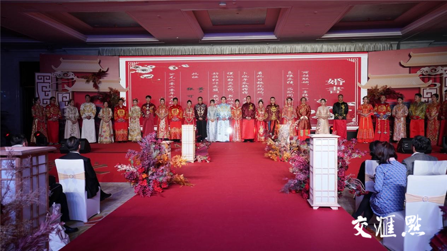 當天婚禮采用中式傳統風俗,影待嫁、三梳禮、迎新婦、拜高堂……一幕幕中國傳統結婚儀式被一一呈現眾人面前。