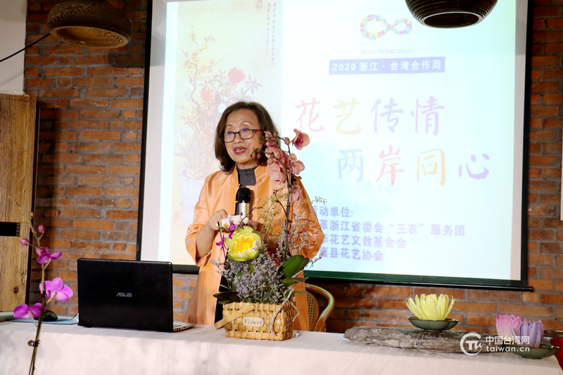 臺灣中華花藝文教基金會教授林愛卿發(fā)表兩岸花藝知識主旨演講。(中國臺灣網 普燕 攝)
