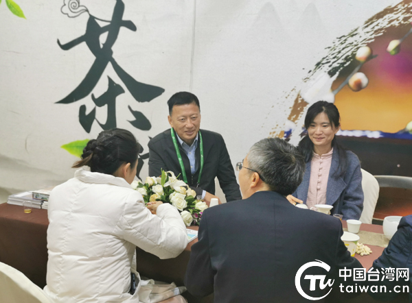 李志鴻(左二)與逛展嘉賓品茶談心。(中國臺灣網 王思羽 攝)
