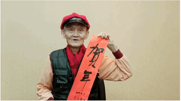 中國臺(tái)灣網(wǎng)2月9日訊 每逢春節(jié),游子心心念念的就是回家過年,除夕是萬家團(tuán)圓的日子。但有許許多多的臺(tái)灣老兵,沒能回到大陸,最終客死他鄉(xiāng)。據(jù)“看臺(tái)海”公眾號(hào)發(fā)布消息,2012年度《感動(dòng)中國》人物、國民黨臺(tái)灣老兵高秉涵在臨近春節(jié)之際,親手寫下賀年新春對(duì)聯(lián),送出祝福心語“吉牛祥兆”,祝愿兩岸同胞在新的一年為了國家富強(qiáng)“用盡牛勁”,齊心協(xié)力完成中華民族偉大復(fù)興的愿望。