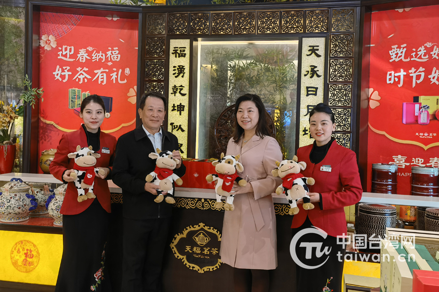 2月10日北京市臺辦副主任于鳳英(右二)帶隊到天福茗茶文化館走訪慰問。(中國臺灣網(wǎng) 吳怡 攝)