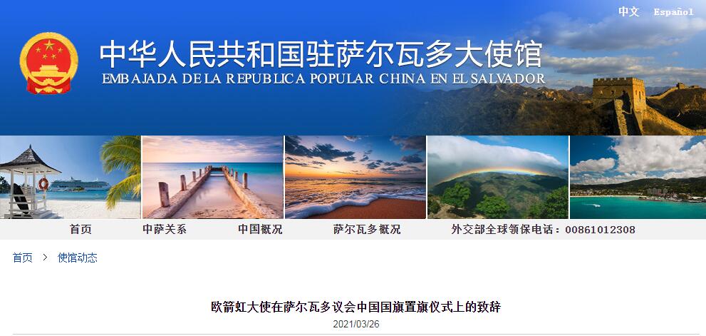 海外網(wǎng)3月26日電據(jù)中國駐薩爾瓦多大使館網(wǎng)站消息,歐箭虹大使在薩爾瓦多議會(huì)中國國旗置旗儀式上致辭,全文如下: