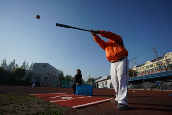 清晨6點半,小鎮(zhèn)上還很安靜,儀征市新集中心小學的操場上已是熱火朝天。初升的太陽照在身上暖洋洋的,教練曾駿安和棒球少年們的影子被拉得長長的。
