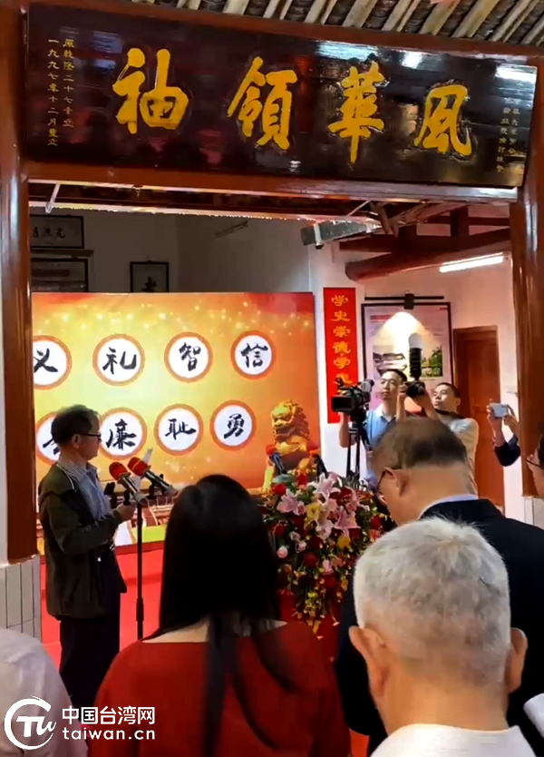 揭幕式上,海協會副會長孫亞夫、國務院臺辦交流局一級巡視員王明鑒、梅州市委臺港澳辦主任王忠豪、蕉嶺縣委統戰部副部長鄧汝芬和來自臺灣的辜金良文化基金會董事長藍博洲等分別致辭。他們一致肯定黃田村墩背徐氏祖堂理事會做了一件很有意義的工作,認為由民間自發舉辦此類展覽,把原本單純紀念祖宗、追思先人的祠堂,變成了紀念革命先輩、宏揚先輩革命事跡與革命精神的紅色展廳,祖堂今用,賦予了古老的祖堂以全新的功能,這是一大創舉,在當前開展黨史學習教育中的一種實踐創新,值得肯定與效法。