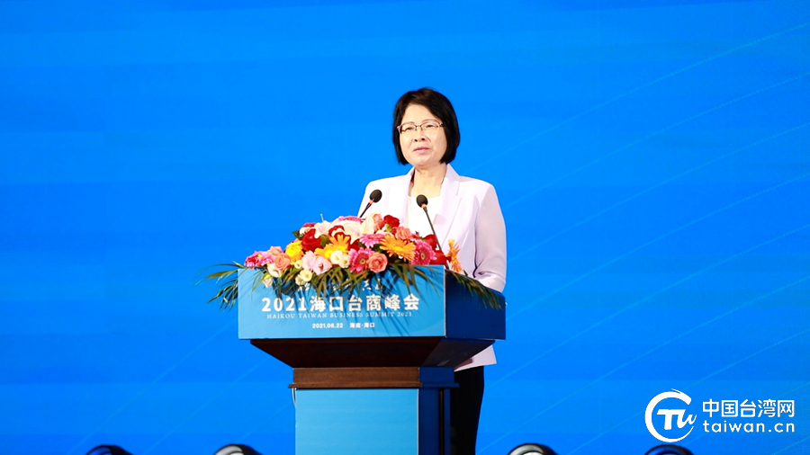 海南省委常委、統戰部部長苻彩香在峰會開幕大會上致辭。(中國臺灣網 李鑫 攝)