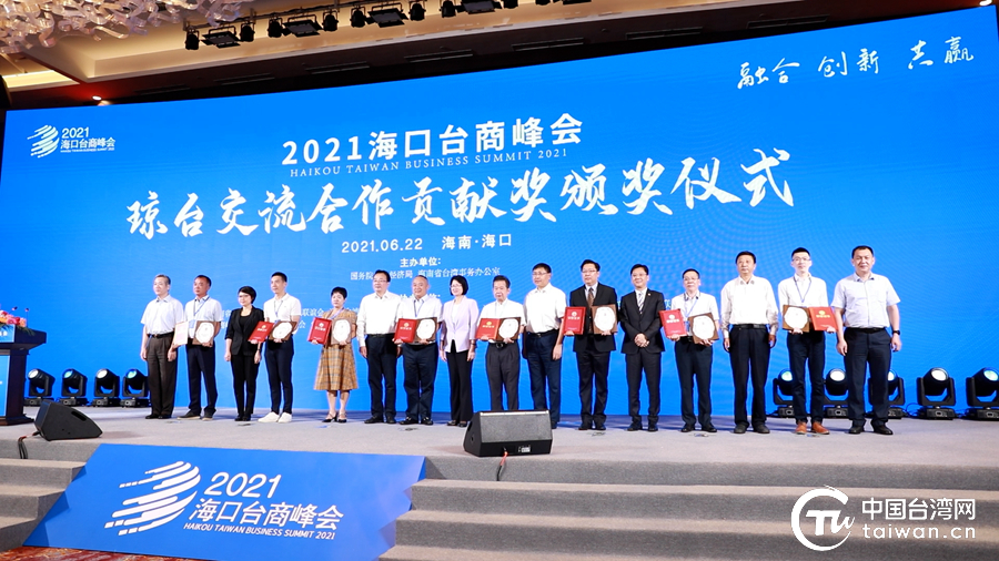 此外,峰會開幕大會還特別增加了頒獎環節。為鼓勵兩岸社會各界人士參與到海南自貿港建設當中來,經海南省委、省政府批準同意,峰會組委會特別設立了“瓊臺交流合作貢獻獎”,以表彰在自貿港建設當中做出突出貢獻的兩岸各界人士。經過層層推選和認真研究,最后評選出洪宜展、黃金牌、陳萬好、陳柏光、江明潔、陳藤楠、林鶴洲、吳祈聰等8位獲獎臺胞。