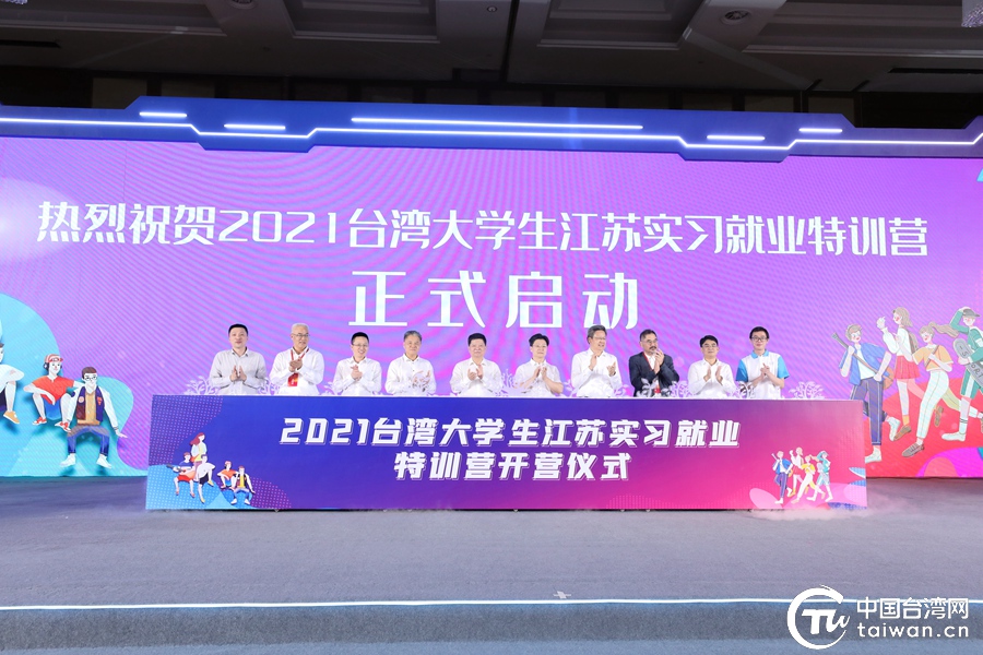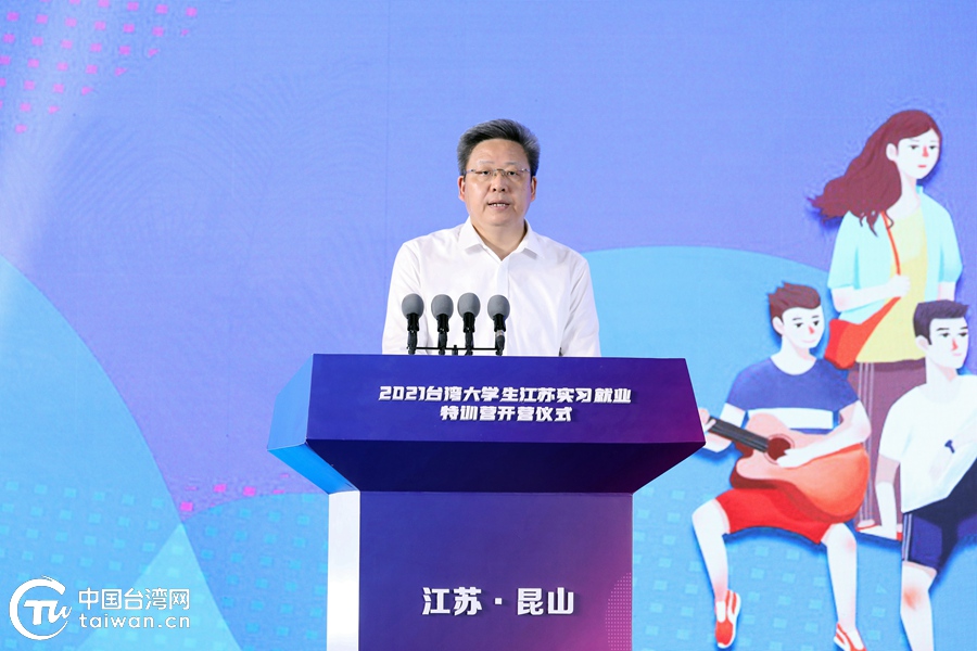 中國臺灣網7月16日昆山訊 (記者 尹賽楠)七月的昆山,描繪出青春的底色。16日下午,2021臺灣大學生江蘇實習就業特訓營在江蘇省昆山市開營。國臺辦與江蘇省市有關部門領導,江蘇省市實習企業代表及臺灣實習生代表約200人參加開營儀式。