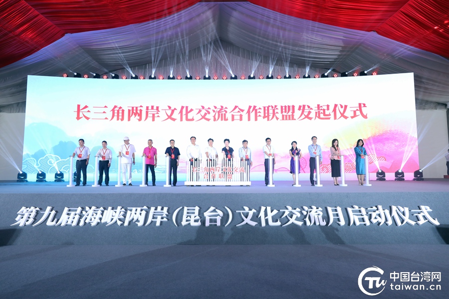中國臺灣網7月16日昆山訊 (記者 尹賽楠)7月16日,第九屆海峽兩岸(昆臺)文化交流月在昆山啟動。國臺辦與江蘇省市領導,全國臺企聯有關負責人,海峽兩岸工商界代表、文教界人士以及臺灣實習大學生代表約400人共聚昆山,深化昆臺交流合作,增進同胞心靈契合。