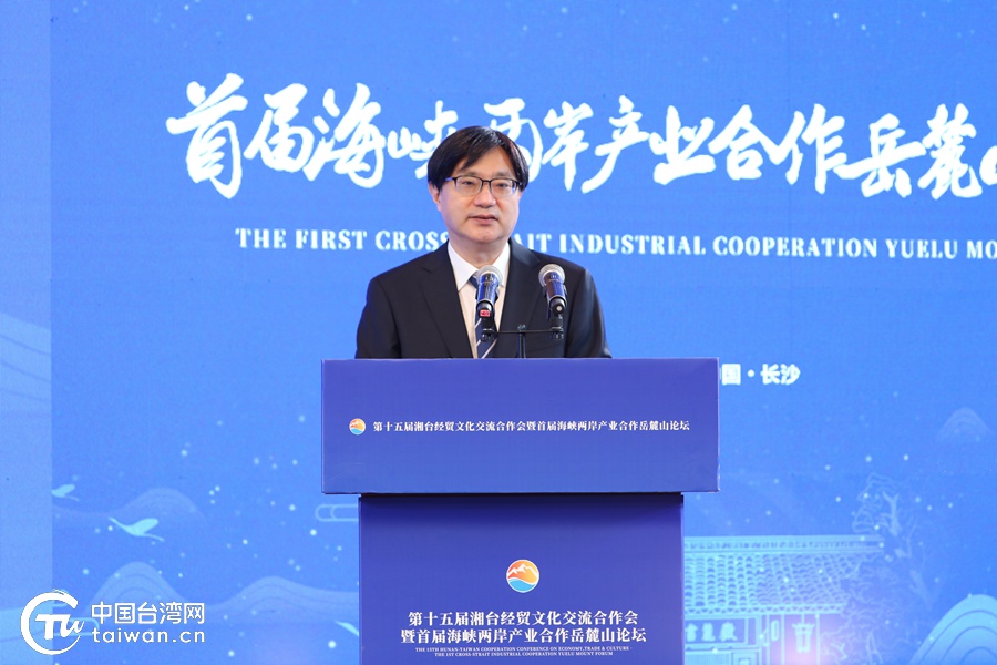 中國臺灣網10月21日長沙訊 (記者 尹賽楠)10月21日,第十五屆湘臺經貿文化交流合作會暨首屆海峽兩岸產業合作岳麓山論壇在湖南省長沙市開幕。臺資企業萬魔聲學科技有限公司創始人謝冠宏在主旨演講中表示,海峽兩岸產業經貿合作三十年來,經歷了由少到多、由淺入深的持續發展,構建了一榮俱榮、一損俱損的命運共同體。