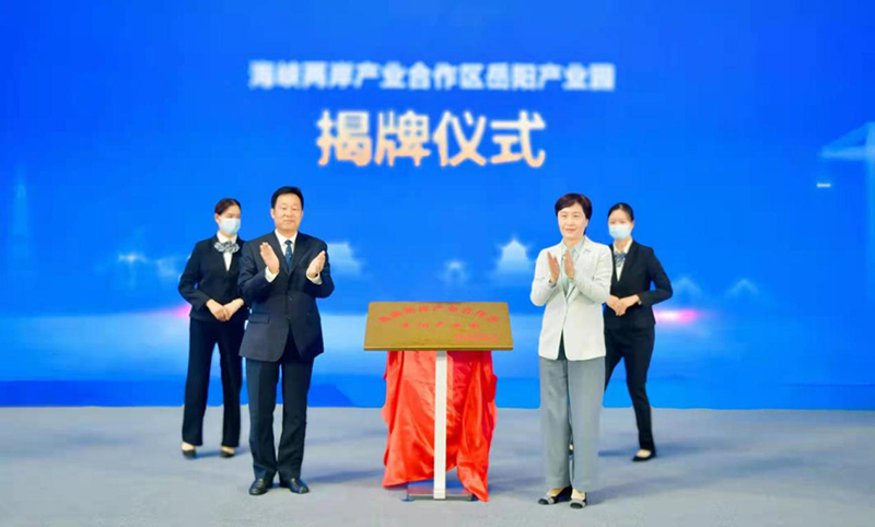 岳陽(yáng)市委副書記、市長(zhǎng)李愛(ài)武,岳陽(yáng)市委副書記、城陵磯新港區(qū)黨工委第一書記李摯共同為湖南海峽兩岸產(chǎn)業(yè)合作區(qū)岳陽(yáng)產(chǎn)業(yè)園揭牌。(中國(guó)臺(tái)灣網(wǎng)發(fā))