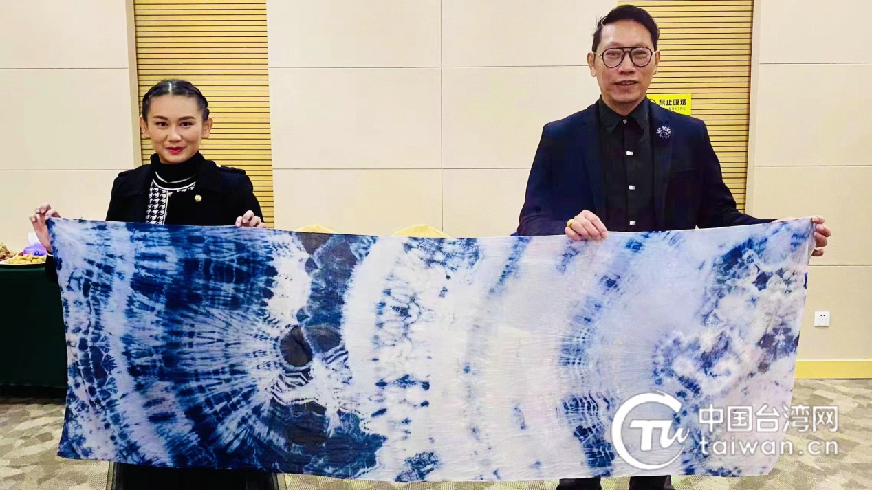 夫妻倆展示一起創作的扎染絲巾(葉春祿 攝)
